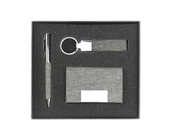 هذه المجموعات المكتبية المُصممة حسب الطلب والمُعاد تدويرها ليست مجرد مجموعة أدوات؛ بل هي تجسيدٌ لقيم علامتك التجارية. يُعد حامل بطاقات العمل، المصنوع من قماش RPET المتين، بديلاً أنيقًا وصديقًا للبيئة للمواد التقليدية. تضمن سلسلة المفاتيح، المصنوعة من مزيج من المعدن المتين وقماش RPET، المتانة مع الحفاظ على طابعها الصديق للبيئة. تُظهر أقلام RPET المعدنية، بآليتها الدوارة وحبرها الأزرق، كيف يمكن أن تكون الأدوات اليومية أنيقة ومستدامة في آنٍ واحد.