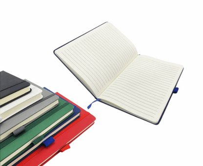 Our premium A5 PU Elastic Notebooks are the definitive choice for impactful corporate gifting, seamlessly blending sophisticated style with unparalleled functionality and bespoke brand personalization. Each notebook is meticulously crafted with a high-quality hardcover PU leather and features elegant rounded edges, presenting a refined aesthetic. These A5-sized notebooks are readily available in an impressive palette of thirteen vibrant colors, ensuring you can select the perfect shade to align with your brand's identity. Practical elements such as an integrated elastic closure, a convenient pen loop, and a useful ribbon marker are thoughtfully included, enhancing usability without compromising on their sleek design.