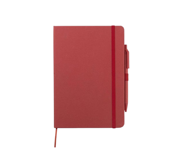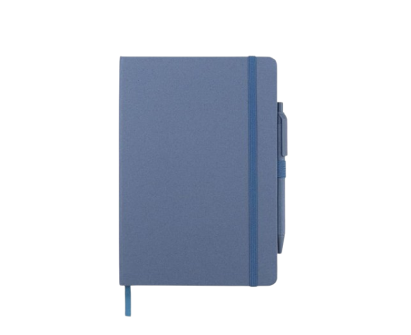 Present an eco-conscious statement with the ABULA - eco-neutral® A5 Hard Cover Elastic Notebook & Pen Set, a truly unique recycled gift for businesses across the UAE, Saudi Arabia, Qatar, Kuwait, Oman, and Bahrain. This set comprises an A5 hardcover notepad and a matching ball pen, thoughtfully presented in a sliding gift box. What sets this collection apart is the innovative use of sustainable fruit papers for both the notepad cover and the pen barrel, materials ingeniously created from the residues of the agri-food industry. This demonstrates a genuine commitment to environmental responsibility.