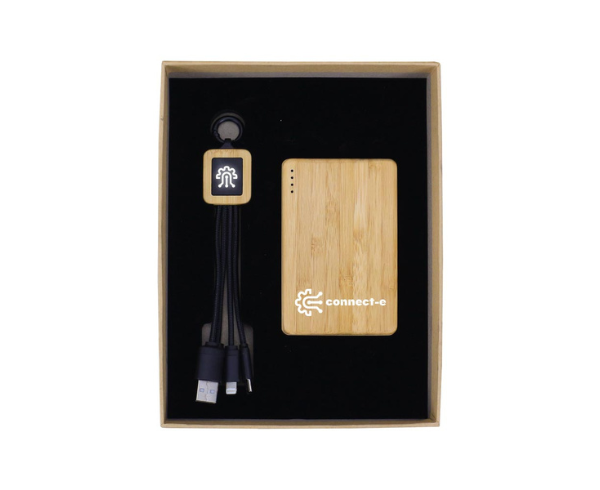 These recycled tech sets are more than just practical gadgets; they are tangible representations of your brand's forward-thinking values. The power bank's 5000 mAh capacity ensures a reliable charge for smartphones and other devices, making it an indispensable tool for anyone on the go. The durable bamboo construction gives each item a natural, sophisticated feel, distinguishing your gift from conventional plastic alternatives and making a lasting, positive impression.