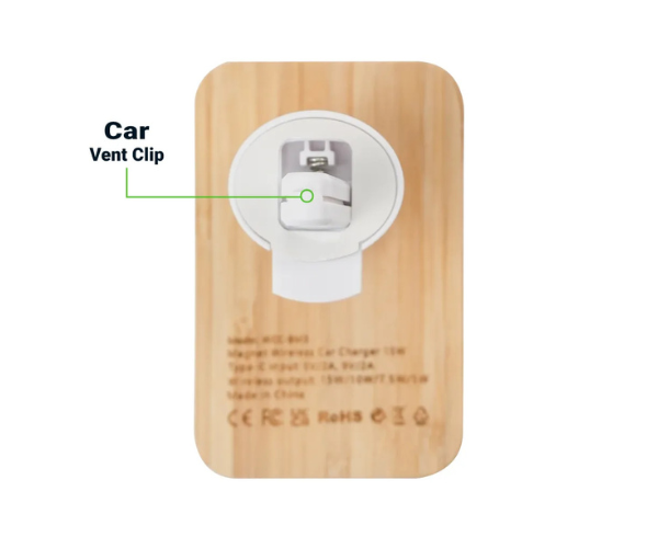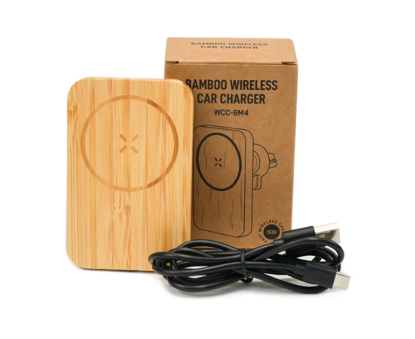 The EcoDrive Wireless Car Charger is a modern and sustainable solution for keeping your devices powered up on the go. This stylish accessory, designed for vehicles across the UAE, Saudi Arabia, Qatar, Kuwait, Oman, and Bahrain, combines a natural bamboo finish with durable ABS plastic, marrying eco-consciousness with high performance. Its 15W fast-charging technology quickly and efficiently powers up your device, while the magnetic mount ensures your phone stays securely in place during the drive. This charger is a great MTC (meaningful technology companion) for any professional.