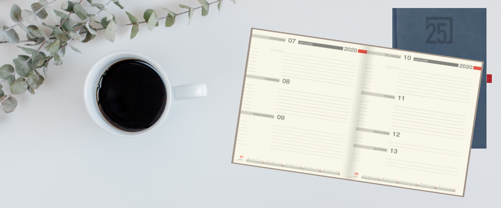 Our range of diaries and planners are laid out in a convenient daily format, with the weekend days being Saturday and Sunday, yet we can customise our products to meet other weekend preferences upon request.