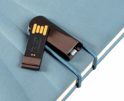 Within these sophisticated notebooks, you will find ruled format pages crafted from premium 70 gsm cream paper, providing a smooth and enjoyable writing experience. A coordinating ribbon marker is also included, allowing for easy navigation and organization of your notes. Available in a selection of three elegant colors, the Sofi USB Notebook embodies both innovation and superior functionality. When branded with your company's logo, these notebooks become more than just a gift; they are a statement, aligning your brand with modernity, utility, and thoughtful design. Make a significant impact at corporate events, conferences, or with discerning clients by showcasing your logo on these stylish and technologically advanced notebooks.